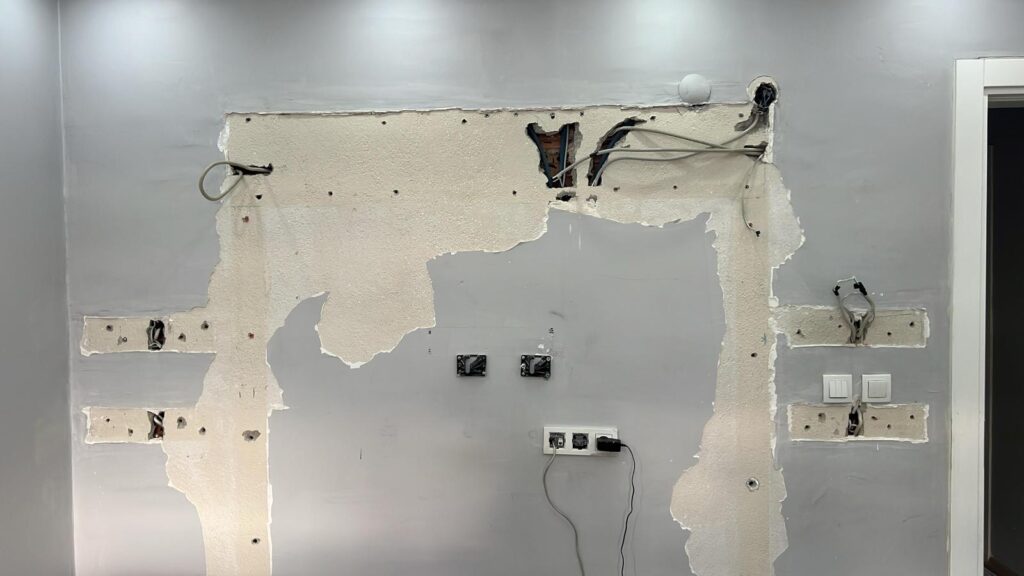 İlk olarak duvar ölçülerini aldık, yüzeyi montaja uygun hale getirdik ve malzeme seçimini mekânın genel tarzına göre belirledik.