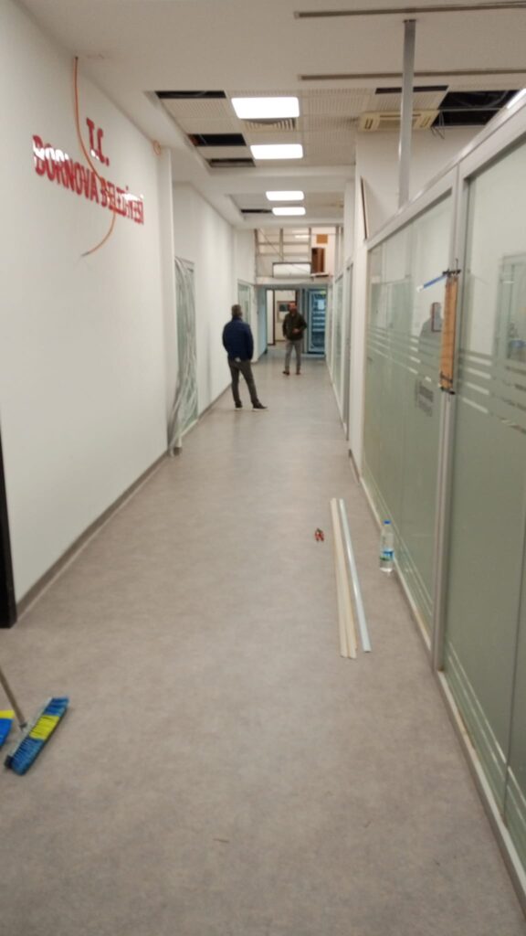 Bornova Belediyesi Ek Hizmet Binası’nda 3.5 mm PVC Yer Döşemesi Montajımız