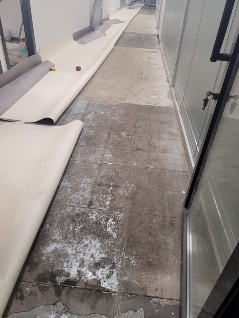İlk olarak alanın mevcut zeminini detaylı şekilde inceledik ve gerekli yüzey hazırlıklarını gerçekleştirdik. Zemin tamamen temizlenip düzleştirildikten sonra, 3.5 mm kalınlığında, yüksek dayanımlı PVC yer kaplaması montajına geçtik.