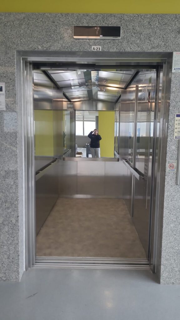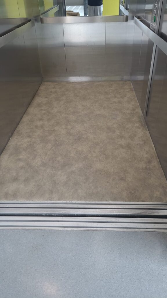 Asansörler, hastanelerde en yoğun kullanılan alanlardan biri olduğu için hem görsel hem de teknik açıdan dayanıklı çözümler gerektirir. Biz de bu projede, yoğun kullanıma uygun, kolay temizlenebilir ve modern görünüme sahip PVC kaplama sistemlerini tercih ettik.