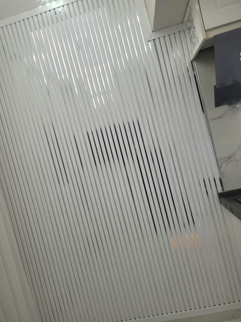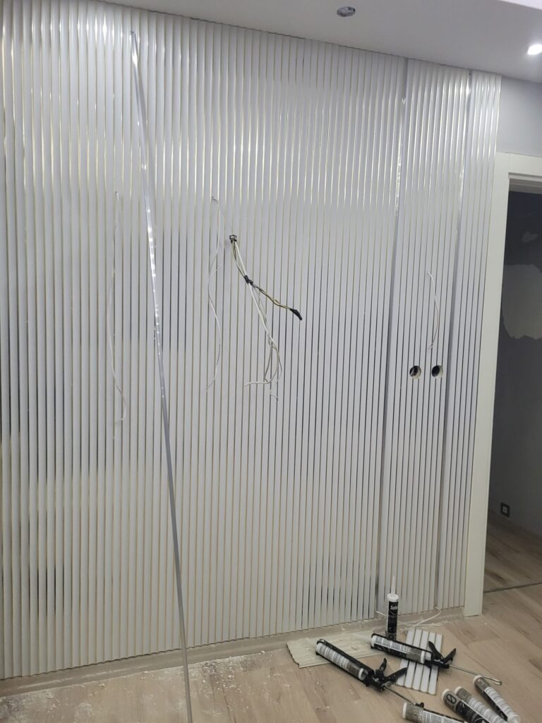 Alan ölçülerini aldıktan sonra, yaşam ünitesinin ölçülerine ve genel dekorasyon tarzına uygun lambri panelleri özenle hazırladık. Paneller, ünitenin bulunduğu duvara hizalı ve dengeli bir şekilde monte edilerek, gözü yormayan ama farkını net şekilde hissettiren bir tasarım elde edildi.