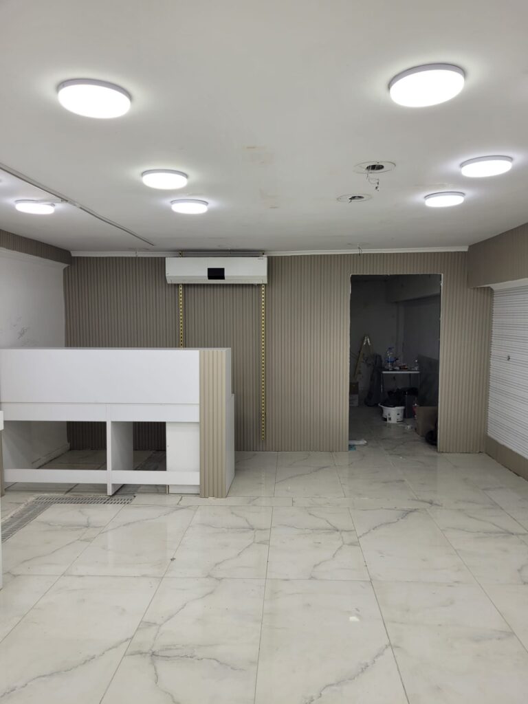 Uygulama tamamlandıktan sonra mağaza alanı çok daha dengeli ve dikkat çekici bir görünüme kavuştu. Lambri panelin kattığı doğal doku sayesinde mekân hem modern hem de samimi bir atmosfer sunar hale geldi.