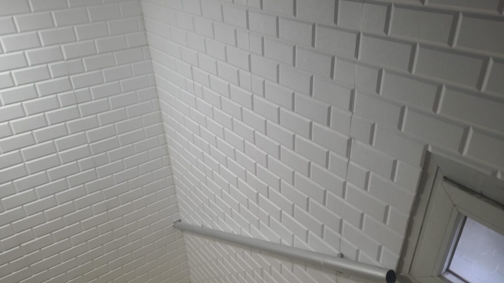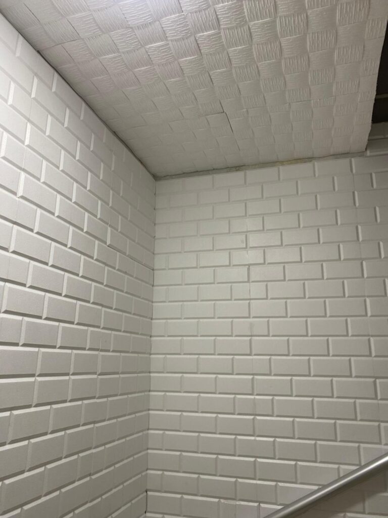 Duvarlara uyguladığımız yalıtım sistemi, nemin iç mekâna geçişini engelleyecek şekilde tasarlandı. Bu katman, lambri panel uygulamasının altında bir nem bariyeri görevi görerek uzun ömürlü bir çözüm sundu.